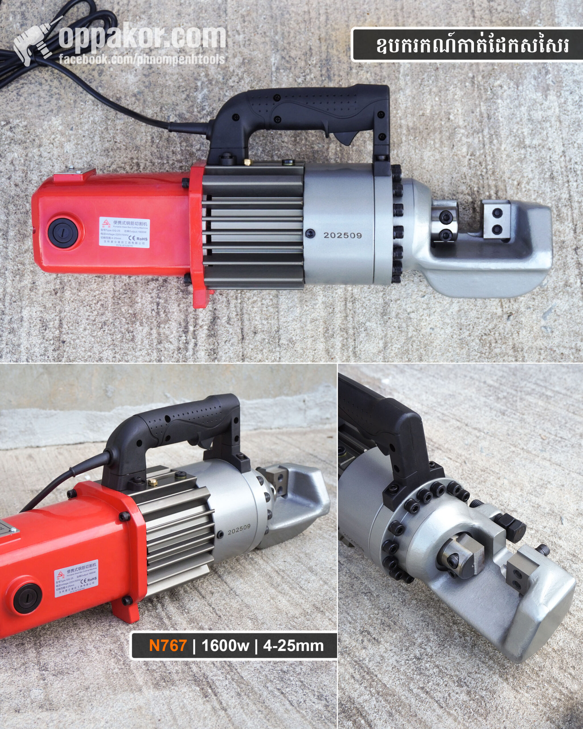 N767 | ឧបករកណ៍កាត់ដែកសសៃរ | Electric Rebar Cutter |1600w | 4-25mm quantity